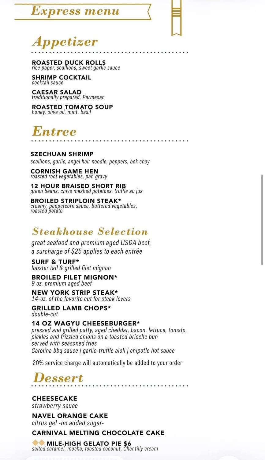 “Our guests continue to tell us they value greater flexibility in how they spend their time on board, and Express Dining was designed with that in mind,” said Christine Duffy, president of Carnival Cruise Line. “Our pilot program generated positive feedback from our guests. With this in mind, we are excited to expand Express Dining to offer them the same high quality dishes and attentive service our dining rooms are known for, while giving guests the ability to use more of their time to enjoy all the other onboard fun.”